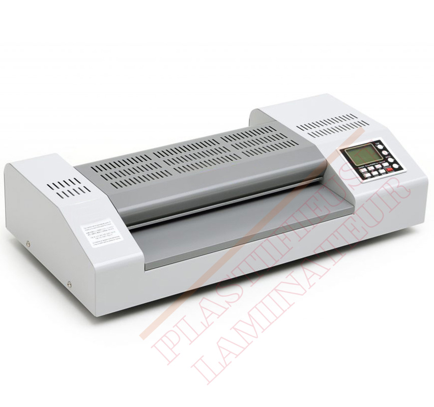 Plastifieuse à pochettes professionnelle FA 330 R6. Plastifieuse de documents avec 6 rouleaux 325mm à chaud et à froid Format max de plastification : A3. Épaisseur des pochettes : 350 microns par face. Vitesse : 1.3 m/min. Conçu pour usage semi-intensif.