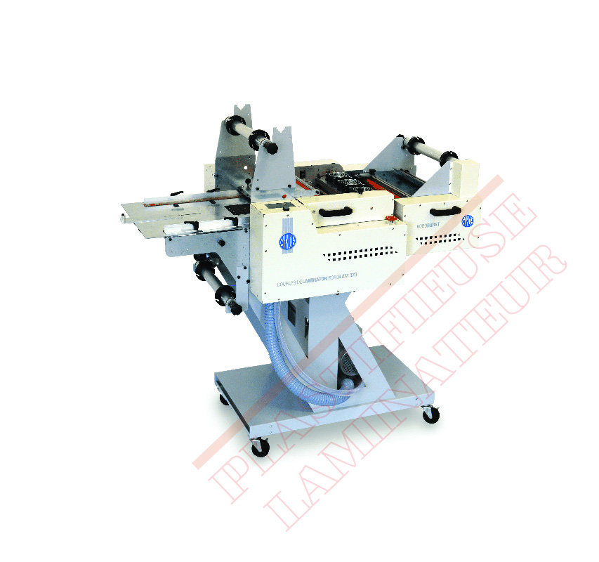 Laminator RotoLam 370 a été conçu comme un dispositif multifonctionnel combinant un dispositif de finition modulaire interchangeable. Pour le moment, il est possible de relier une unité de séparation des feuilles plus un axe enrouleur pour les films foils. De plus, nous lancerons bientôt une unité de coupe qui est complètement unique pour couper une feuille ou la diviser en cartes de visite dans le cadre du processus de laminage. Cette unité s'ajuste complètement automatiquement dans les deux axes de coupe ou en lisant les marques de coupe.